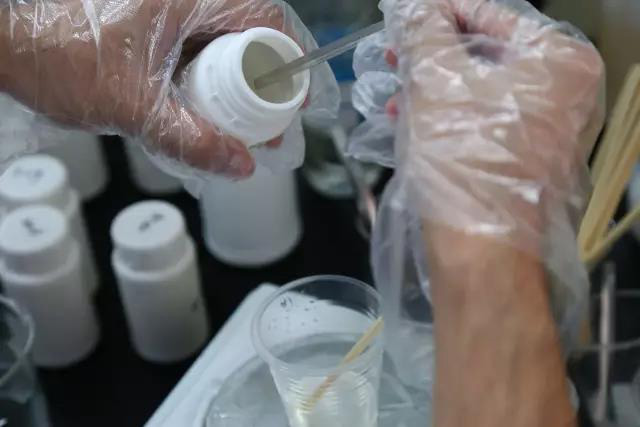 將樣品杯中的混合液體分別倒入6個量筒中,然后放入水浴鍋中加熱到95℃,接著取出所有量筒,再放入振蕩儀中進行5分鐘的猛烈振蕩。